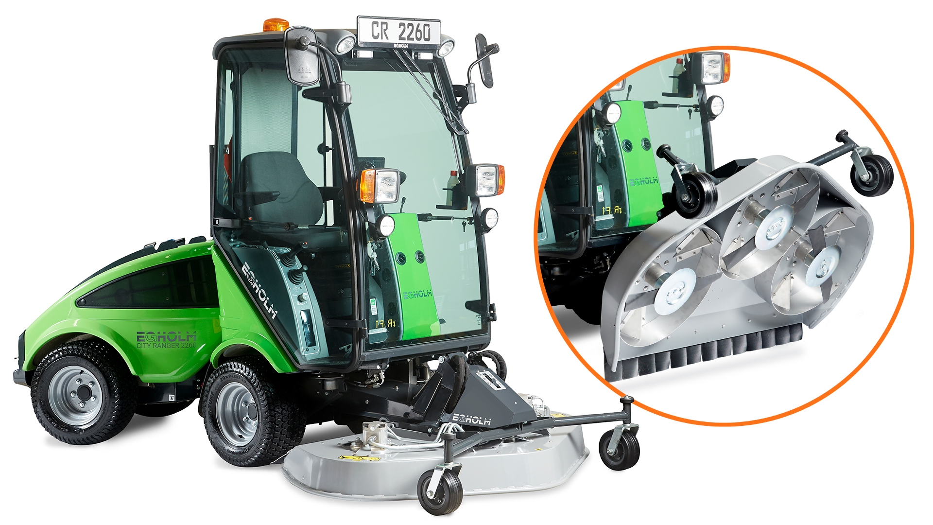 The rotary/mulch mower 1500 is the latest addition to a wide selection of City Ranger 2260 attachments - an innovative solution with its unique hydraulic features and specially developed blades.